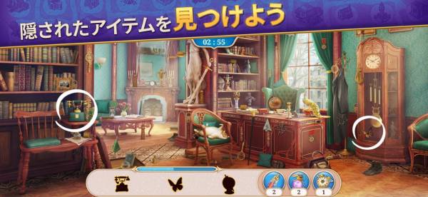 指定されたアイテムを制限時間内に探し出しましょう。アイテムを見つからないときは、ピンチアウトで拡大すれば見つかるかもしれません。同じステージに何度も挑戦することがありますが、探すアイテムやアイテムの配置場所は変わるので何度でも楽しめます。