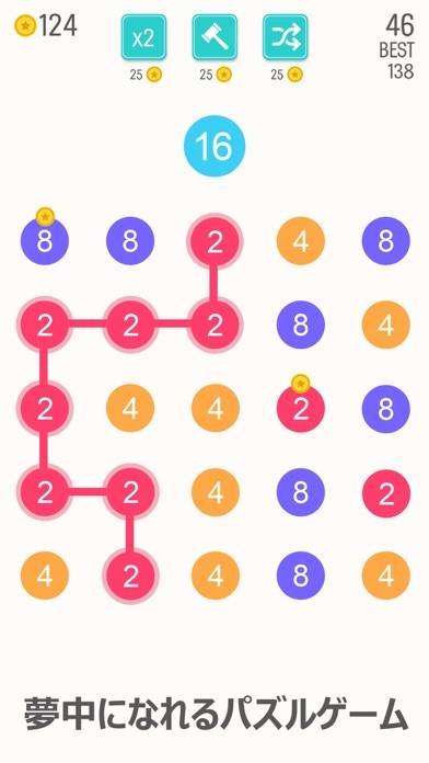 スライドで繋げるだけの簡単操作なのとゲームシステムがシンプルで分かりやすく、つい夢中でプレイしております(*´v`*)広告表示がありますが課金なしでも十分に楽しめます。頭の体操にもなるため、空き時間や暇つぶしなどにぴったりなのでぜひおすすめです。