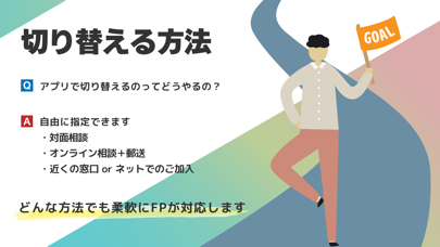 相談窓口的なところはどうも逃げ場がない気がする&イマイチ納得できないということがあったのですが、これは気軽に相談してじっくり考えることができて、思ってたより良かったです。最初に個人情報がいらなとのことだったのでインストールしてみましたが、最終的に自分で納得し、FPさんと直接面談をし、詰めることができました。ロボット診断は質問が曖昧な部分が気になりましたが、それ以外は良かったので、知人にも勧めています。
