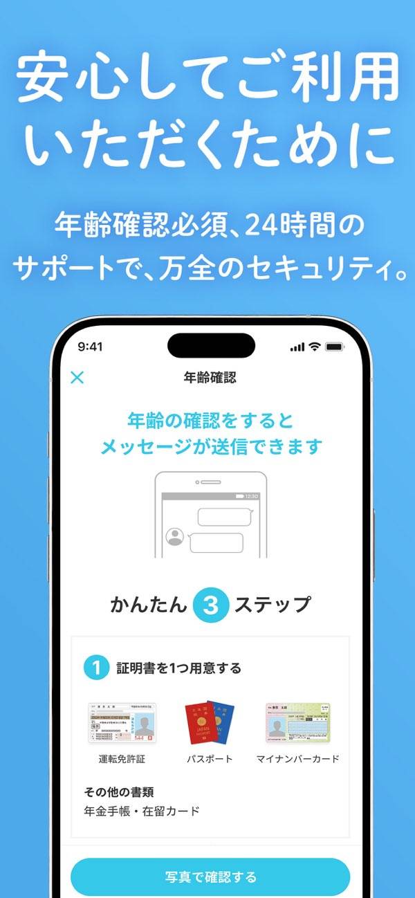 | 年齢確認方法 | 運転免許証、健康保険証、国民保険証、住民基本台帳カード、年金手帳、共済組合証、パスポート、マイナンバーカード、在留カード |
