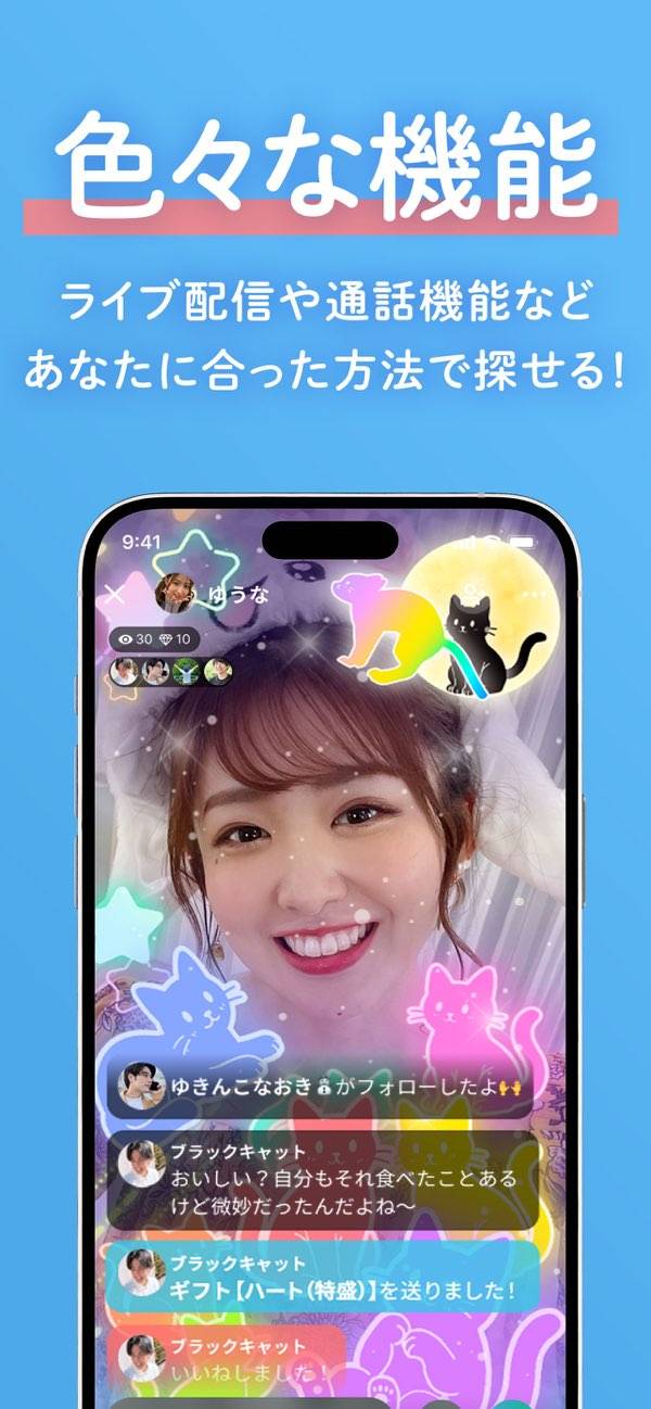 - ライブ機能で楽しく出会いを探せる