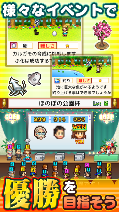 「投資」の項目があり、費用を負担してあげると新たなお客さんが来てくれるように。お客さんが増えると公園に使える資金が増え、評価もアップします。お金に余裕がある際は進んで投資してみましょう。