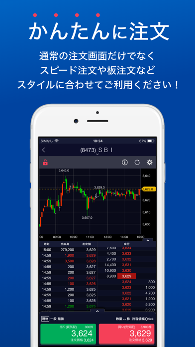 - 板注文やスピード注文などから、自分に合うスタイルで注文操作を行える