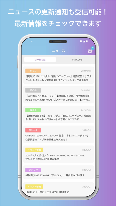 日向坂46に関する情報が集約されています。メンバーごとのブログや最新情報、メディア出演情報など、ありとあらゆる情報が本アプリにまとまっています。いちいち検索をして調べる必要はもうありませんよ。