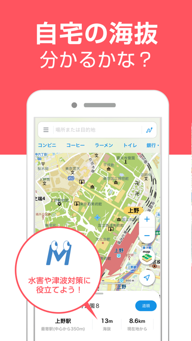 - 周辺のコンビニやトイレもすぐ探せて、知らない街でも安心