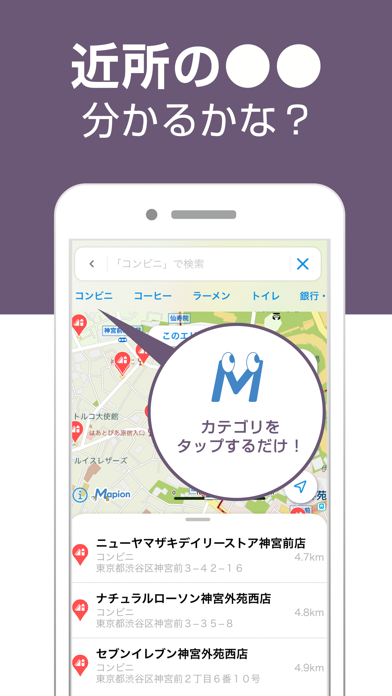 - 周辺のコンビニやトイレもすぐ探せて、知らない街でも安心