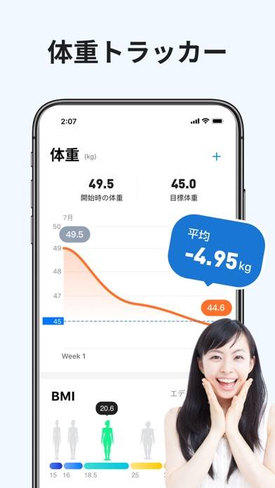 - 体重の変化をグラフで記録。BMIも算出できて、今の状態がすぐわかる