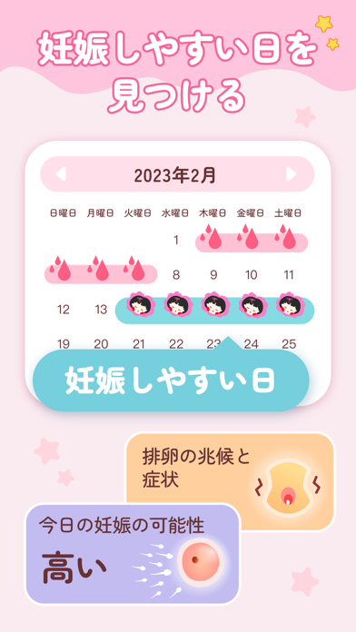 カレンダーでは生理日のほか、妊娠しやすい時期や排卵日なども予測してくれます。体調の悪い日などがわかりやすいので、スケジュールを調整する際にも役立つでしょう。自分の身体を理解することで、体調・精神面でのトラブルも減るはずです。