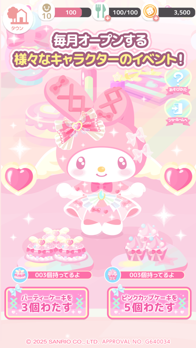 タウンにはサンリオキャラクターがおり、クエストで交流を楽しめます。選択肢から回答したりアイテムをあげたりして、困りごとを解決してあげましょう。ポムポムプリンやキキララなど、おなじみのキャラクターとのまったりとした日常が、心を癒してくれます。