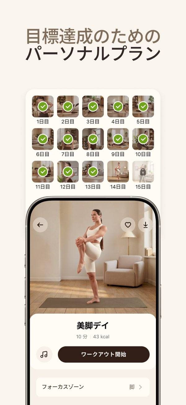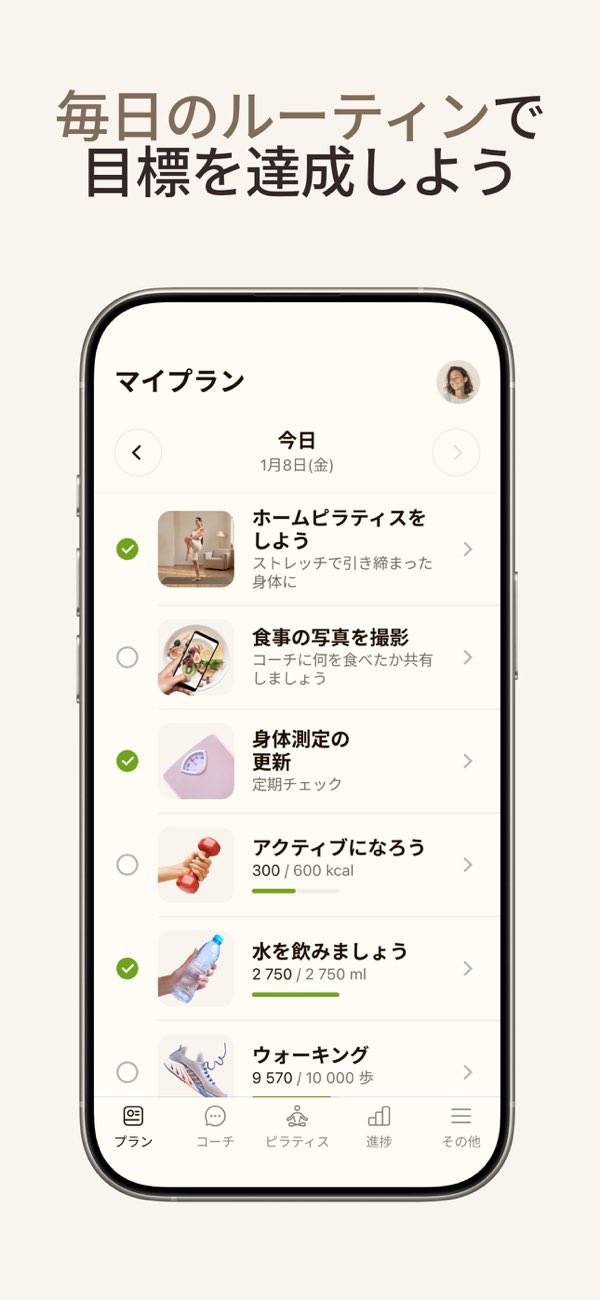 プロフィールに合わせたワークアウトプランを考えてくれるアプリです。現在の体型や運動量、水分量などを考慮し、目標体重までどれだけ日数がかかるかを計算してくれます。