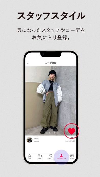 全国各地のWEGOスタッフ選りすぐりのコーディネートを見られます。着用しているWEGOの商品は、そのままアプリから購入可能。気になったコーディネートは、お気に入り登録をして普段の着こなしの参考にできますよ。