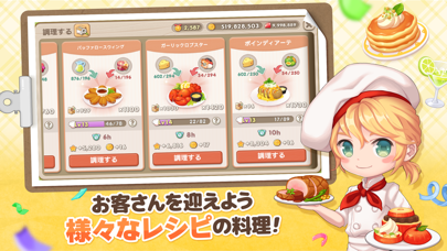 自分だけのレストランをデザインし、経営していきましょう。自分の好きなようにデコレーションでき、1階だけではなく5階まで拡張できます。新しい食材を獲得すると料理のレシピをアップグレードできます。