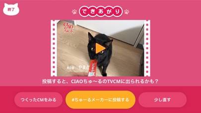 おうちの猫を主役にした短いCM風動画を作れるアプリです。猫の名前と都道府県を入れて、3カット撮影するだけでCMが完成。実際にCMに出演したかのような気分を味わえます。