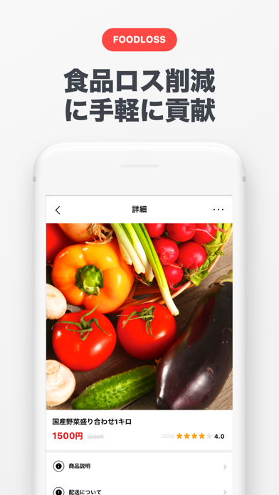 - 規格外品や余った在庫などの訳あり商品を購入できるショッピングアプリ