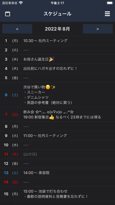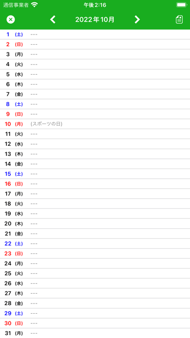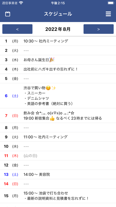- シンプルで見やすい縦型カレンダーアプリ。日付ごとにメモの記載が可能