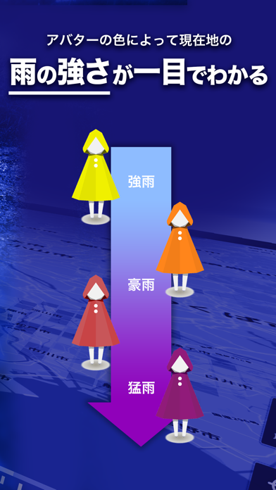 雨量が色分けされており、何分ほど前に自分のいる地域でどれほど降っていたかがとても楽に知れるため、天気予報よりもより正確にこれからの天気を知ることができます。
