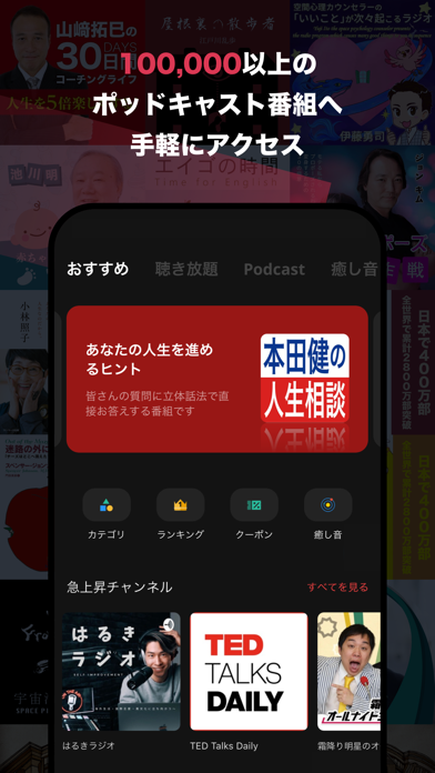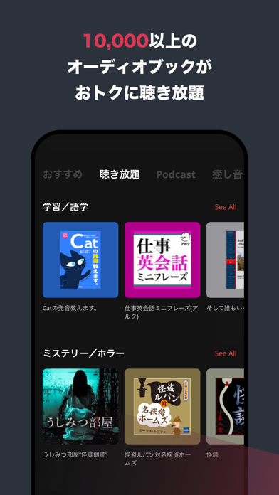 - ビジネス書や教養番組が10,000件以上聴き放題。幅広いジャンルから選べる