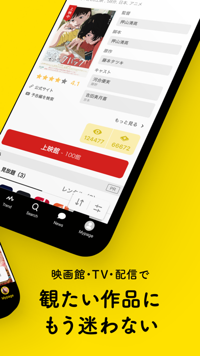 気になる作品やお気に入りの俳優、監督などをブックマークできます。保存した情報をもとに新たな作品を見つけたり、好きな俳優や監督の最新情報をいち早くゲットしたりできます! 本アプリを使って映画やドラマ、アニメをより一層楽しみましょう。