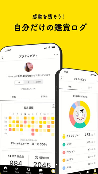 ユーザー自身が観た映画やドラマ、アニメの感想をレビューとして投稿できます。そのため、ほかのユーザーのリアルな評価を参考に作品選びをすることが可能です。また、自分の感想を共有することで、同じ作品を観た他のユーザーとの交流も楽しめます。