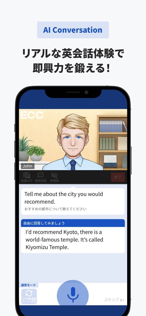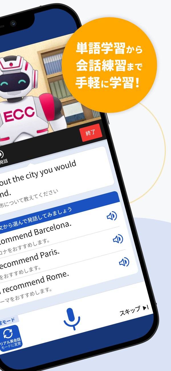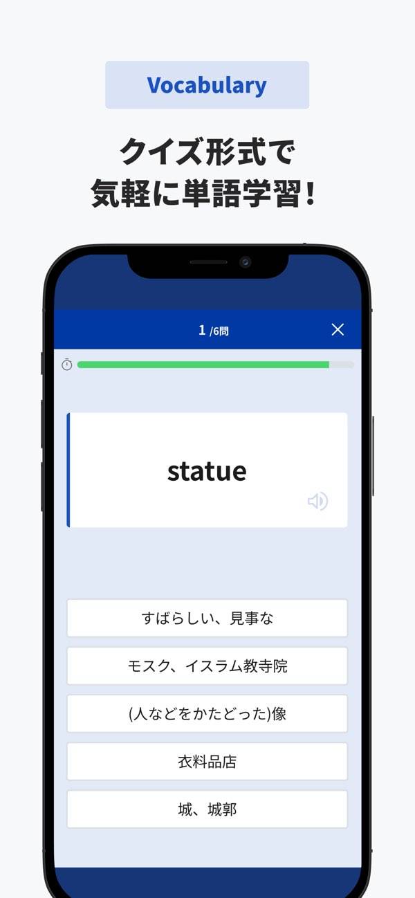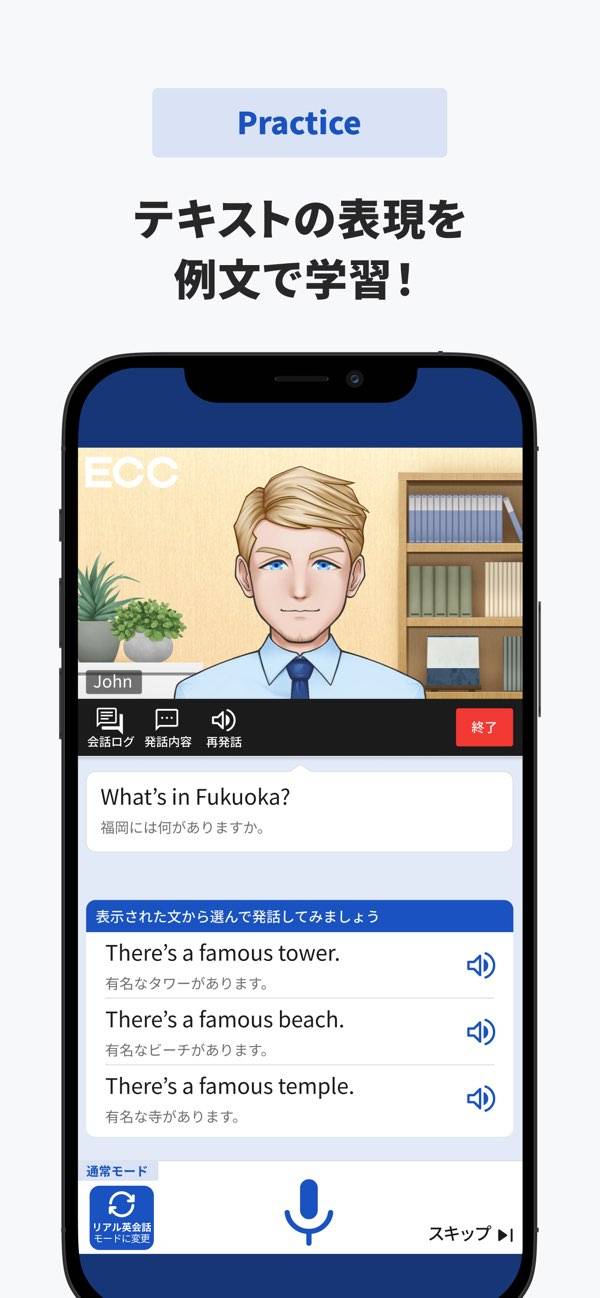 仮想の街に訪れる外国人とさまざまな話をしていく英会話アプリ。実際に音声マイクで話して進めるため、まるで実際に会話をしているような感覚で勉強できます。また発音の良し悪しも分析してくれるので、確かなレベルアップを望めます。英会話を上達させたい人には嬉しいアプリと言えるでしょう。