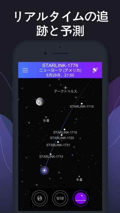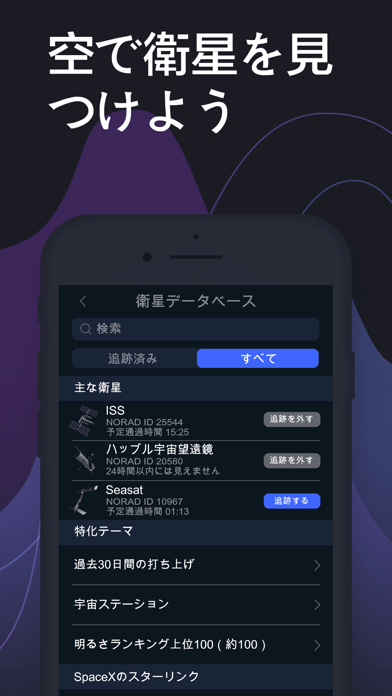 - 人工衛星を肉眼で観察したい時に便利。アラート機能も付いている