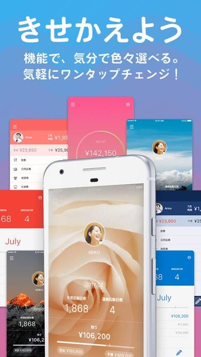 アプリ画面のテーマを自分に合ったデザインに変えれば、家計簿の記録が楽しくなるでしょう。