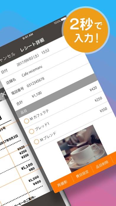 - レシート読み取り機能を搭載。商品名や金額を自動で入力できる