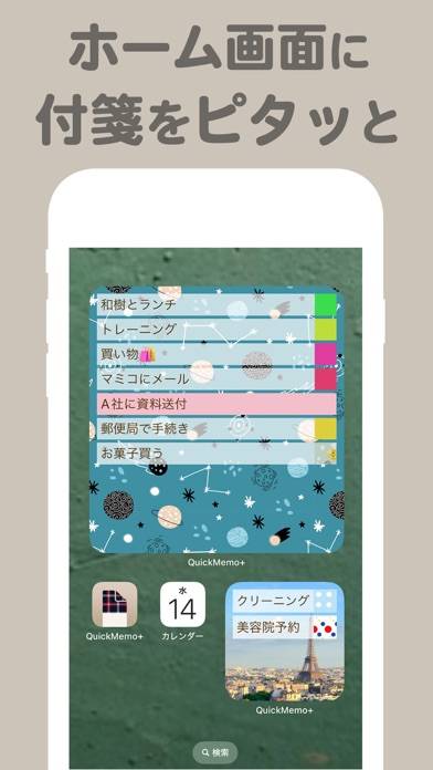 - ウィジェット化できる。ホーム画面に追加して付箋をすぐにチェック