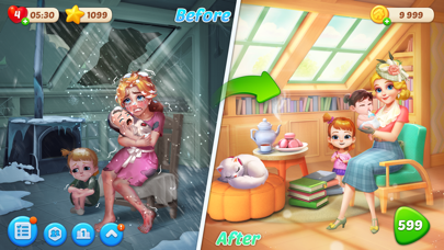 スリーマッチパズルゲームでポイントやお金を貯めながら、家を掃除したりリフォームしたり、好きな家具や絨毯などを飾って、家を綺麗にしていくゲーム。他にも似たような家や庭を飾るスリーマッチパズルはありますが、このゲームの良いところは、最初に3つくらい表示されている家具などの他に、イベントで家具の種類を追加できたり、他ユーザーの家に訪問して、自分が持っていない家具を追加できる事。これは他には無い良いシステムだと思いました。