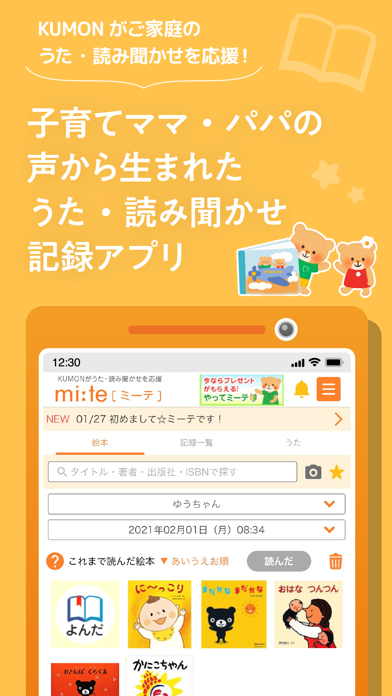 うたや絵本の読み聞かせをスムーズに記録できるアプリ。テーマ別の絵本紹介や年齢別ランキングから、お子さんにぴったりの1冊も探せます。