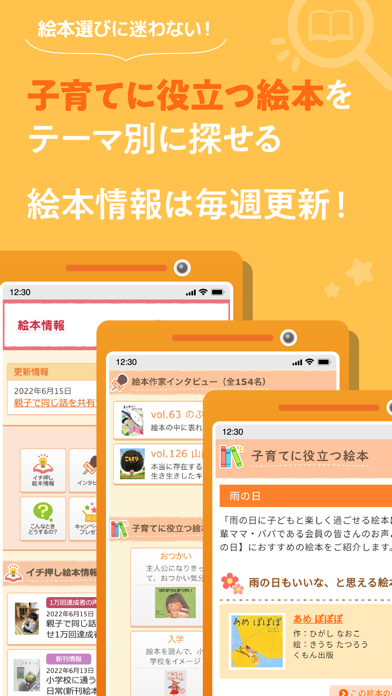 読み聞かせ向けの絵本が、テーマ別や年齢別ランキングで紹介されています。週ごとに情報が更新されていて、イチオシの絵本や作家インタビューも充実。