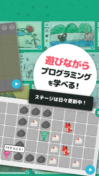 - 小学校低学年から使え、遊びながら学べるプログラミングアプリ