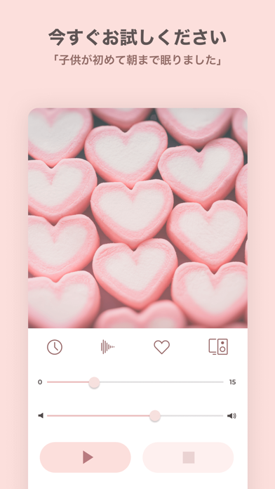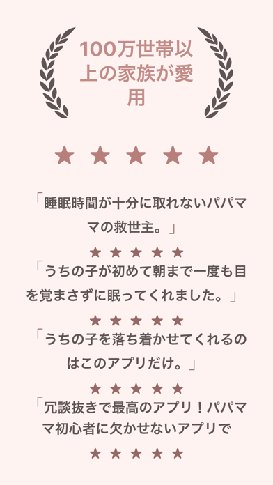 本アプリは、赤ちゃんにとって心地よいサウンドが深い眠りを提供。夜中に起きなくなり、親御さんにとってもぐっすり眠れる効果を期待できます。定額制なのでまずは7日間使っみて効果を確かめましょう。