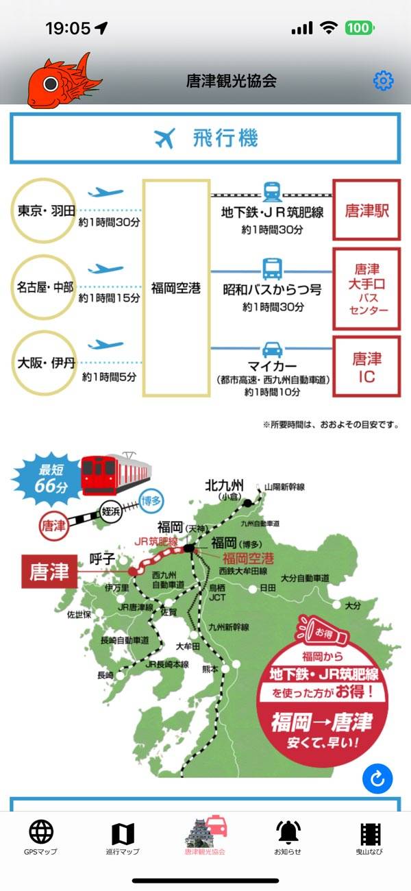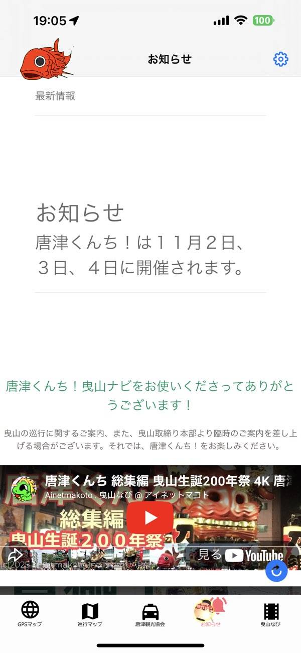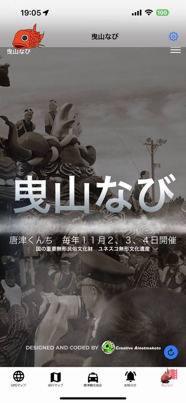 佐賀県唐津市で行われるお祭り「唐津くんち」を楽しむためのアプリです。本アプリではお祭りの山車の位置をリアルタイムで教えてくれる機能があります。