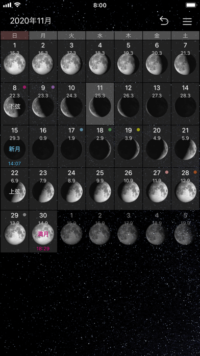 - 日付と合わせて、その日ごとの月の満ち欠けを表示してくれるカレンダー