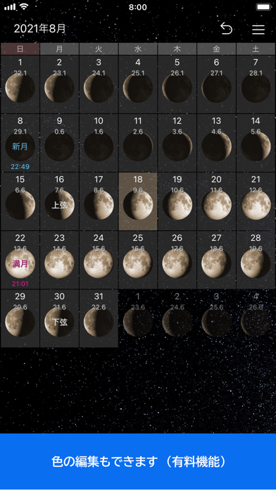 月の満ち欠けをカレンダーで一覧 ウィジェット表示対応の天体データアプリ