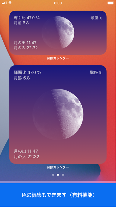 - ウィジェット表示にも対応。アプリを開かずに今日の月の様子がわかる