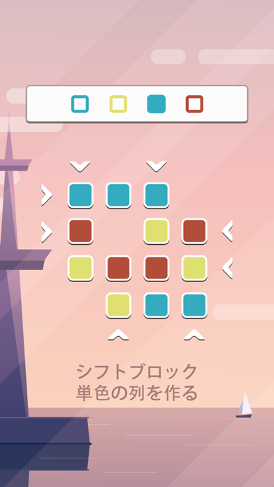 - ブロックの列を指定された色に合わせる、論理的パズルゲーム