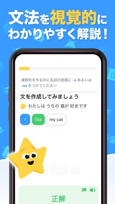 はじめて英語にふれる人にも、中学英語をやり直したい人にもぴったりな英語学習アプリ。イラスト付きで語彙と文法をわかりやすく解説してくれるので、英語が苦手でも安心です。