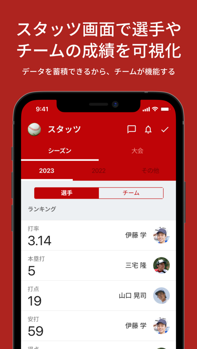 草野球レベルだともったいないくらい高機能なスコアアプリで驚きました。選手全員と日程や結果を共有できるし、タイムラインで話し合いもできる。選手個人の成績もしっかり記録できるから、弱点とか見つけやすくて良いと思います(・o・)!野球のマネージメントにも成績アップにも必要なアプリですね!
