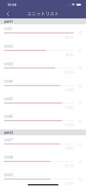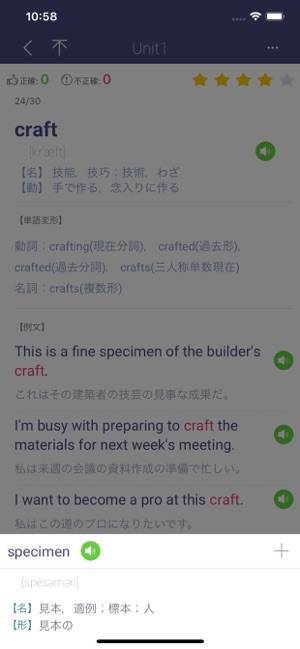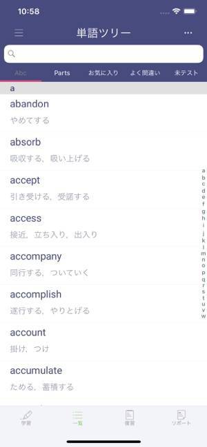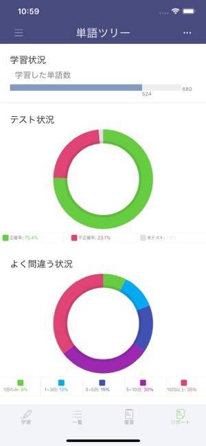 - 豊富な単語とその詳細情報、学習進捗のグラフ表示が特徴
