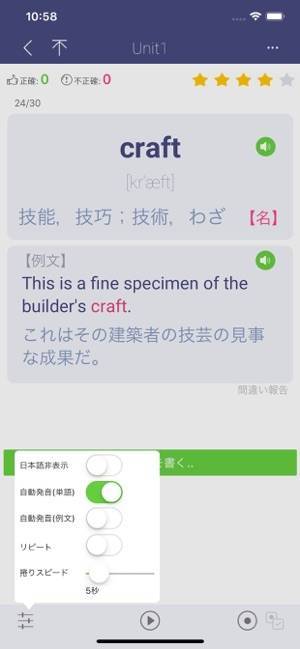 録音機能を使って自分自身の発音を録音し、再生して確認することが可能。また、各単語に対して自分の理解などのメモをカスタマイズで入力することもできます。これにより、自分自身の発音を客観的に確認でき、より深く単語を理解するのに役立ちます。