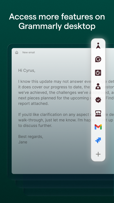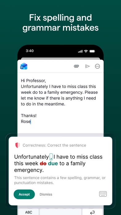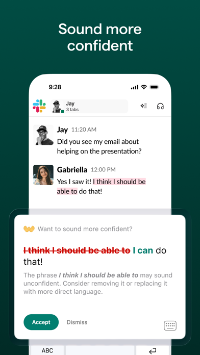 タイピングするたびに、自動でスペルや文法のチェックが行われます。また文章のトーンに合わせて最適な単語を提案する機能もあり、カジュアル・ニュートラル・フォーマルの3種類から選択可能。修正はタップ操作で行えるため、手軽な使用感です。