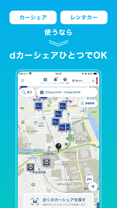 - 全国8,000ヵ所以上で利用できる車種を、本アプリから検索できる