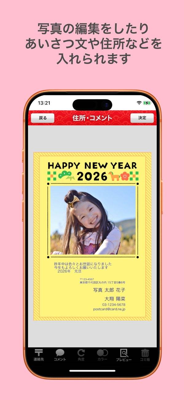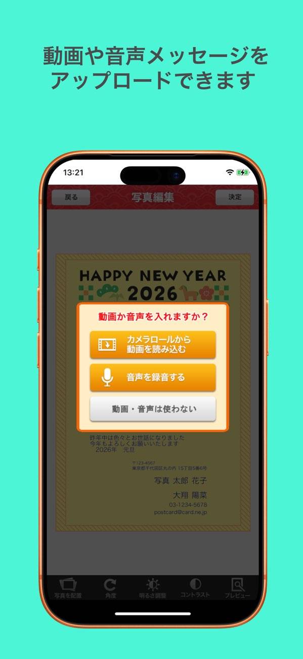 フォト入り年賀状に音声や動画も添えられる、心の距離をぐっと縮めてくれるアプリです。お気に入りの写真を選んで、メッセージや録音した声を簡単にのせられます。郵便局に行かなくてもスマホで注文OK。新しい年の始まりに、あたたかい気持ちが届きます。