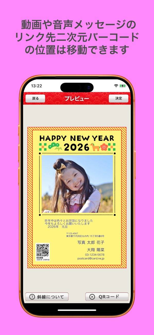 - 音声・動画を再生できる二次元バーコードを添付。年賀状に気持ちがこもる
