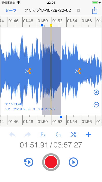 - 音源のカット編集やリバーブ追加が簡単にできる録音アプリ