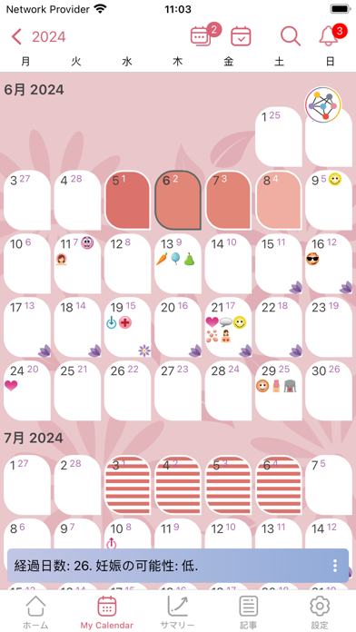 WomanLog Pro カレンダー