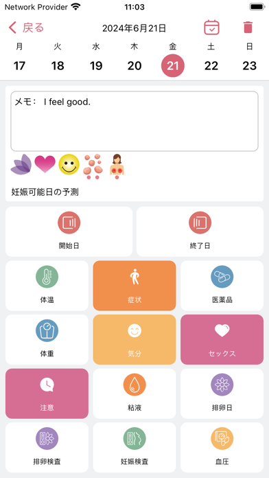 - 体調の変化を、簡略化されたアイコンでパパッと入力できる
