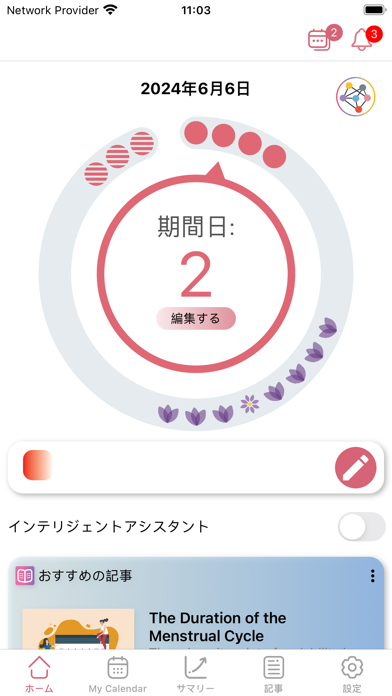 1ヵ月の生理サイクルが一目でわかる ピンクのかわいいカレンダーアプリ